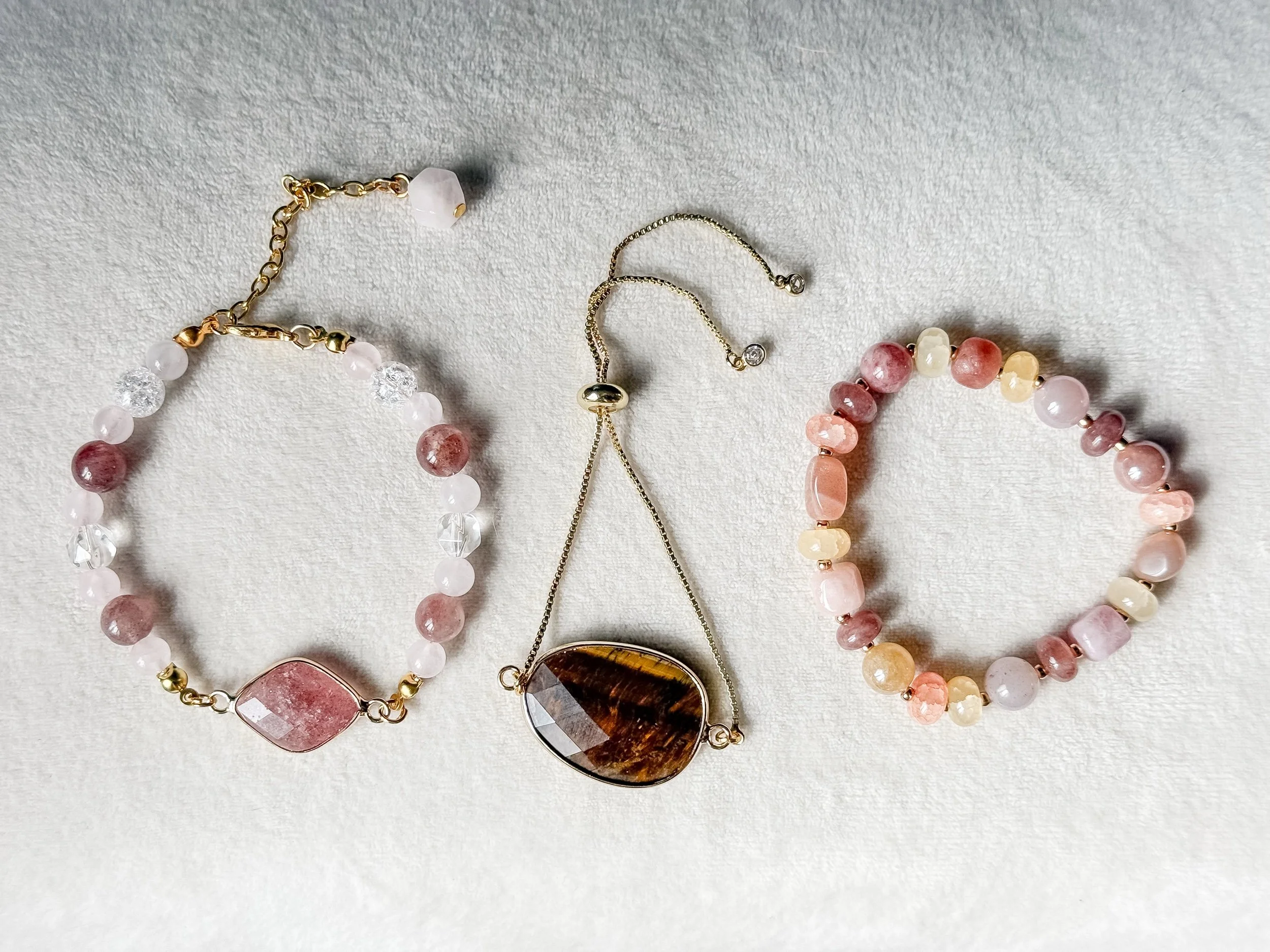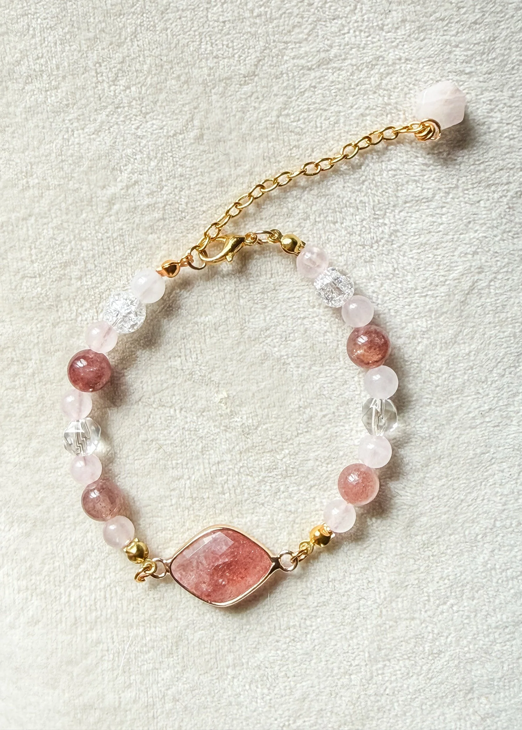 Beautiful and simple. Strawberry, Rose and Clear Crystal Quartz support your heart center. A reminder and a facilitator of unconditional love, compassion and self empowerment.